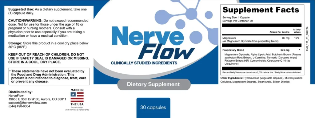 Follow the directions on your bottle’s label. Take NerveFlow daily with a glass of water (taking with food can help if you have a sensitive stomach). Consistency matters—try to take it at the same time each day.